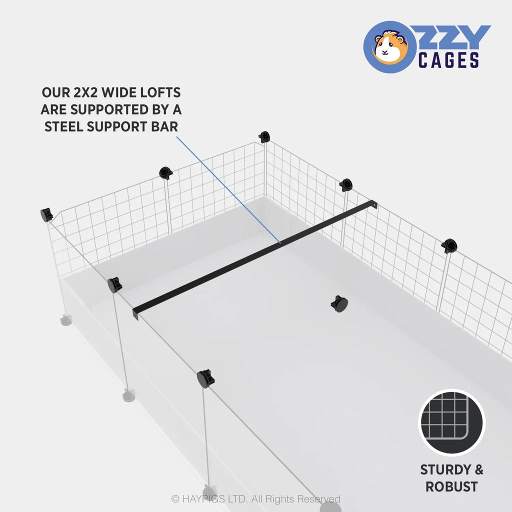 This combo includes a ramp, corflute base, grid walls and connectors allowing you to add a loft to an existing Ozzy Cage.