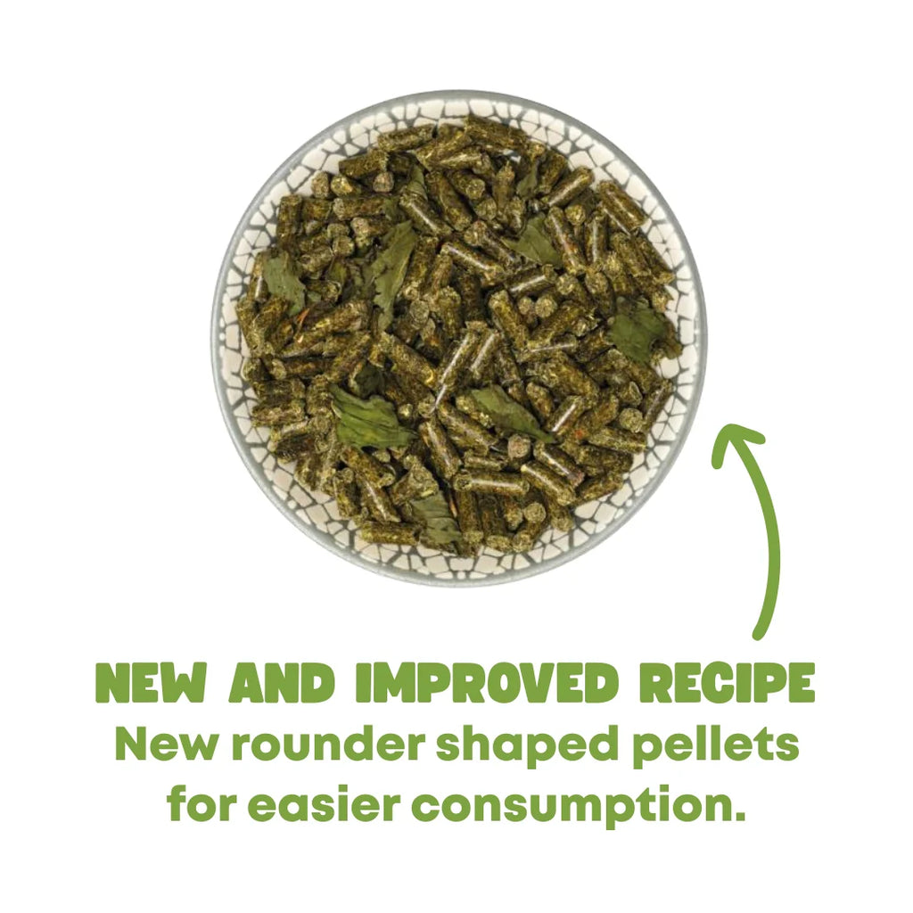 GuineaPigDream BASIC offers a balanced mixture of 63 plants & herbs from untreated meadows as well as a high proportion of stabilised vitamin C to cover all requirements. Plus mint & superfood for a particularly beneficial and easily digestible diet.