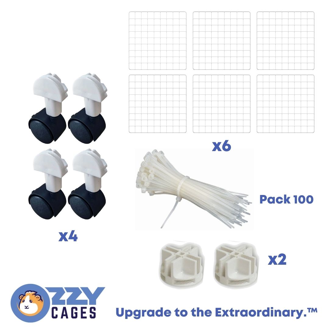 Please note: Ozzy Wheel Connectors are not recommended for other brands of C&C cages and are only compatible with the original Ozzy C&C grids we sell on our Guinea Pigs Australia Store. Cage image for display purposes only and is not included in the kit.