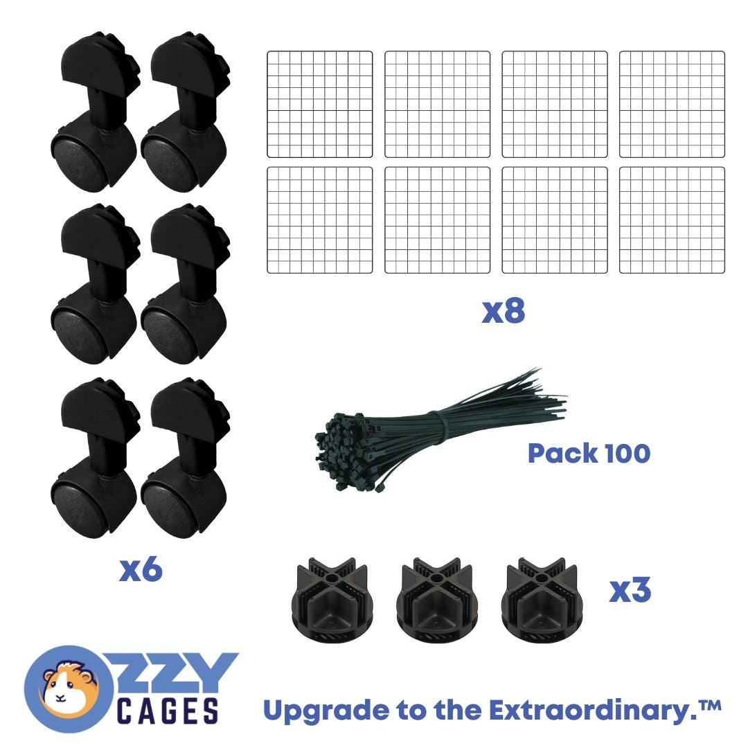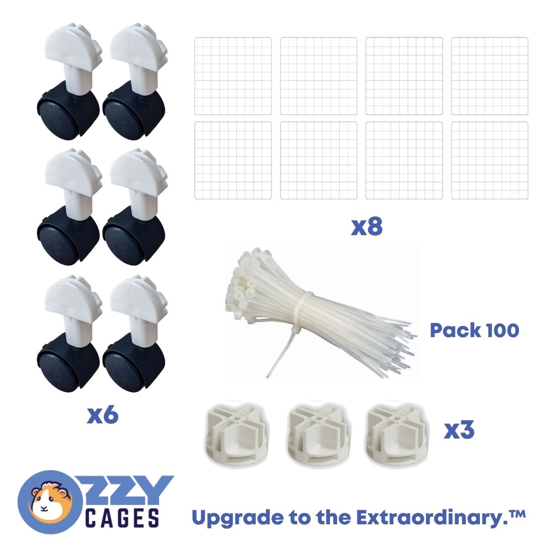 Please note: Ozzy Wheel Connectors are not recommended for other brands of C&C cages and are only compatible with the original Ozzy C&C grids we sell on our Guinea Pigs Australia Store. Cage image for display purposes only and is not included in kit.
